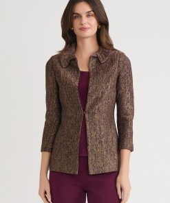 Misook Women’s Heritage Multi-stitch Knit Jacket – True Fit | Viola & Truffle & Charmeuse & Biscotti