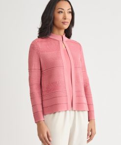 Misook Women’s Heritage Multi-stitch Knit Jacket – True Fit | Viola & Truffle & Charmeuse & Biscotti