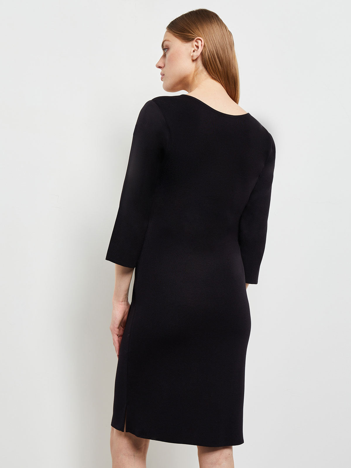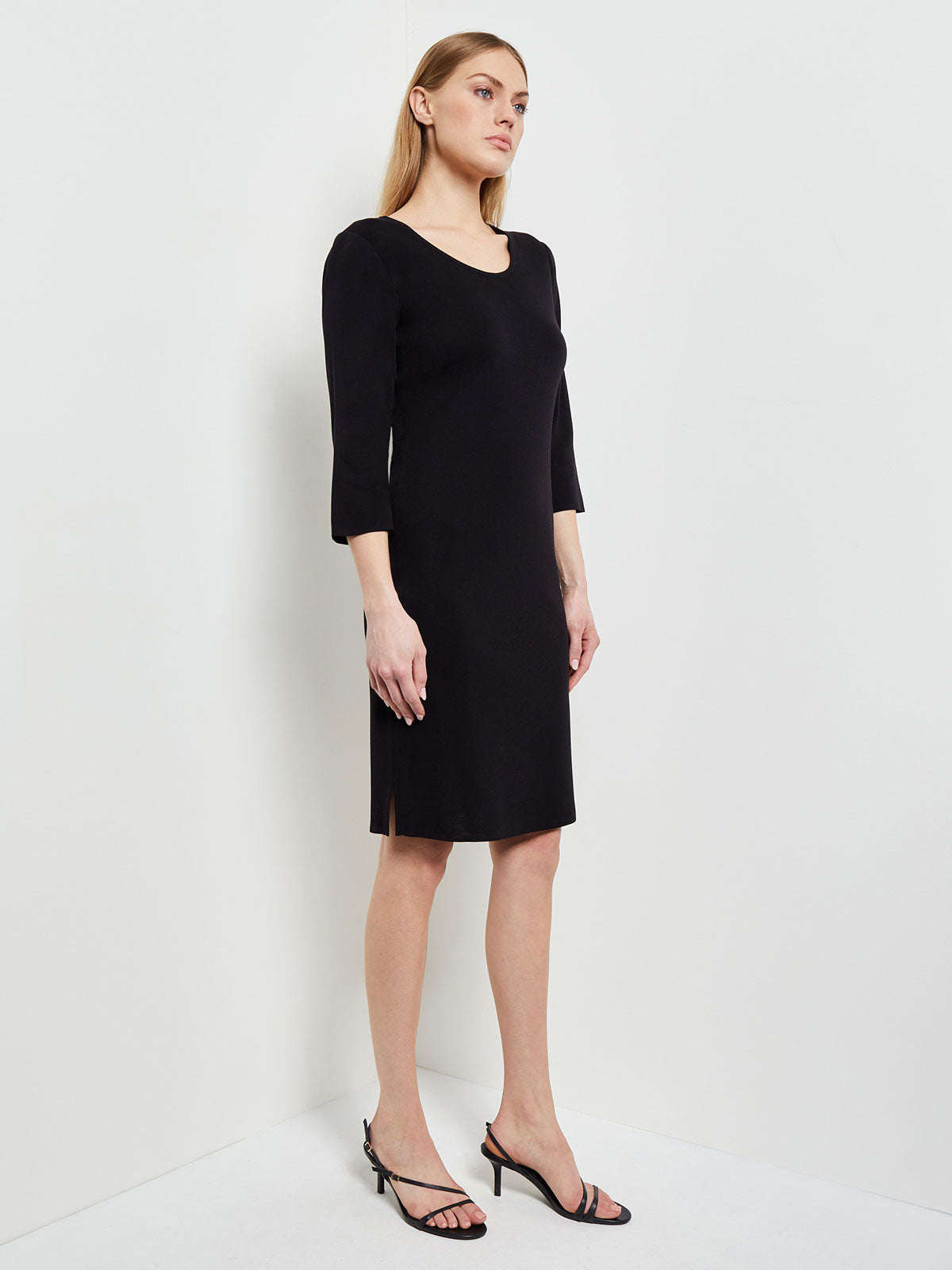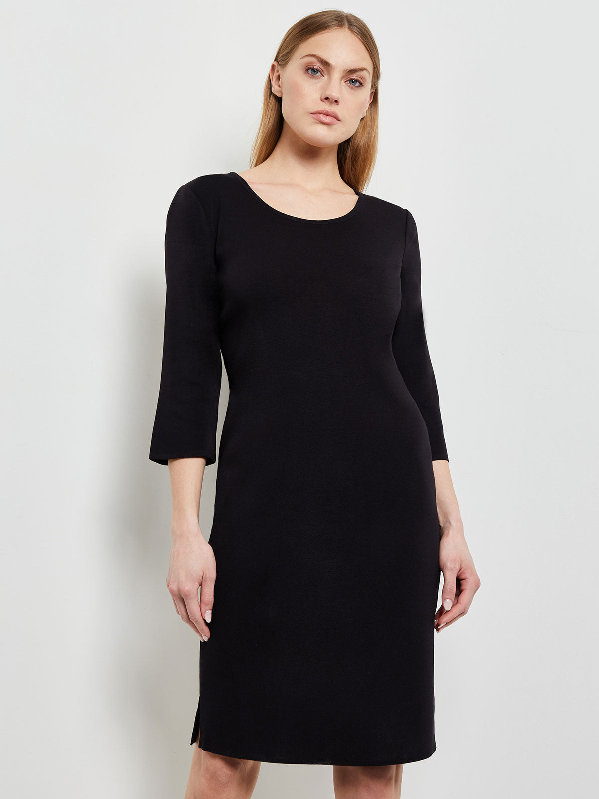 Misook is the epitome of timeless elegance and effortless style. Crafted from a high-quality knit fabric, the dress features a classic sheath design that skims the body without being too tight or revealing, making it a versatile and sophisticated option for a range of occasions. The 3/4 length sleeves add a touch of coverage, making it perfect for transitioning between seasons. Wrinkle-Resistant Knit Dress Machine or Hand Wash; Cold Water 90% Acrylic / 10% Polyester Women’s Dress Length is 40” 3/4-Length Sleeves; Scoop Neck; Unlined Side Slit Design for Comfort and Fit Fade & Stretch Resistant to Hold Its Shape and Color Fully Fashioned Knit This knit was expertly crafted with the meticulous “fully fashioned” method in which each panel of a garment is knit individually in its precise shape, eliminating waste and leaving little to no leftover materials. Bluesign®