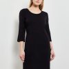 Misook is the epitome of timeless elegance and effortless style. Crafted from a high-quality knit fabric, the dress features a classic sheath design that skims the body without being too tight or revealing, making it a versatile and sophisticated option for a range of occasions. The 3/4 length sleeves add a touch of coverage, making it perfect for transitioning between seasons. Wrinkle-Resistant Knit Dress Machine or Hand Wash; Cold Water 90% Acrylic / 10% Polyester Women’s Dress Length is 40” 3/4-Length Sleeves; Scoop Neck; Unlined Side Slit Design for Comfort and Fit Fade & Stretch Resistant to Hold Its Shape and Color Fully Fashioned Knit This knit was expertly crafted with the meticulous “fully fashioned” method in which each panel of a garment is knit individually in its precise shape, eliminating waste and leaving little to no leftover materials. Bluesign®