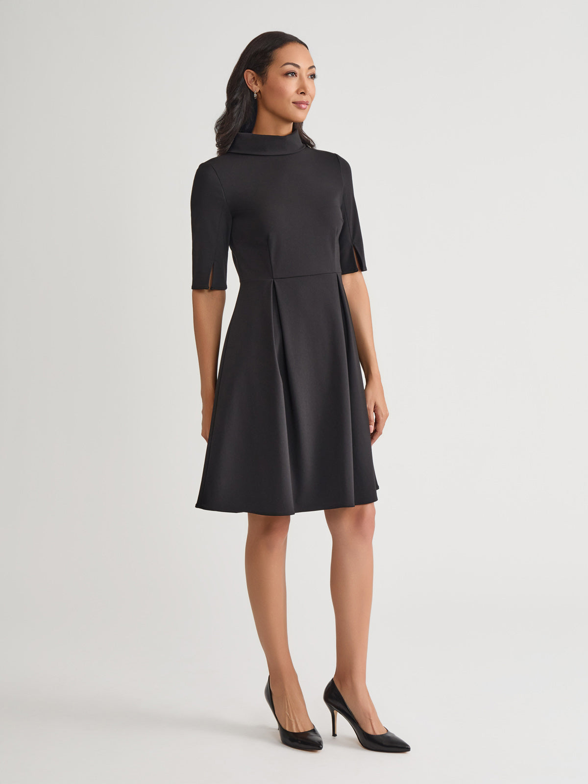 Elevate your wardrobe with the timeless elegance of the A-Line Pleated Stretch Ponte Dress. Designed to flatter your figure, this knee-length dress offers the perfect blend of style and comfort, making it an ideal choice for cocktail parties, weddings, office events, and more. The stretch ponte fabric ensures a smooth, figure-enhancing fit, while the pleated design adds movement and sophistication to your look.