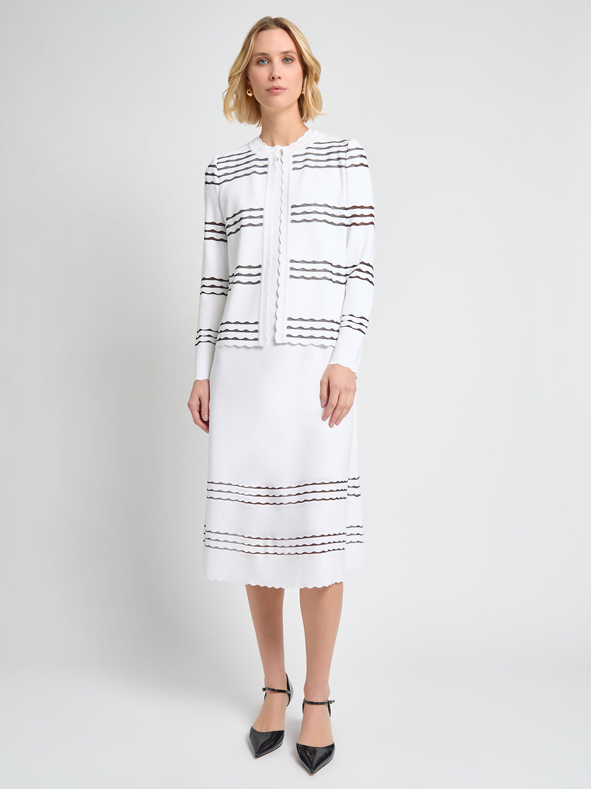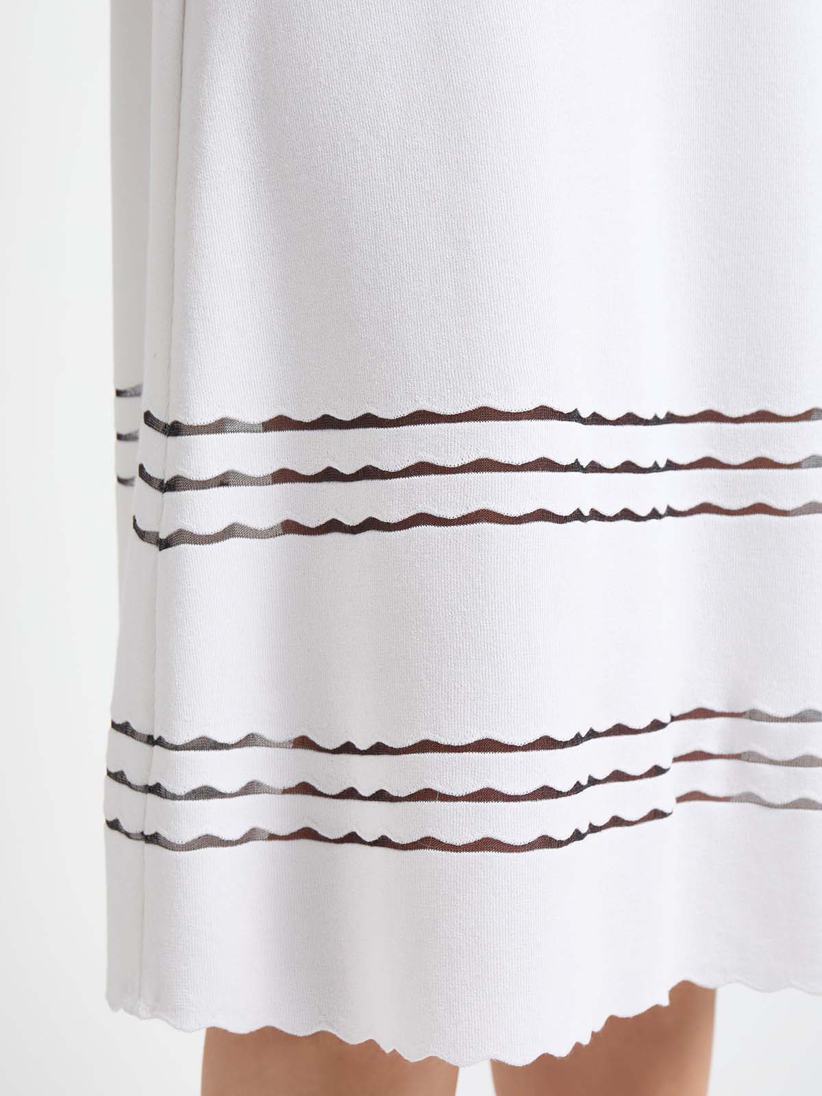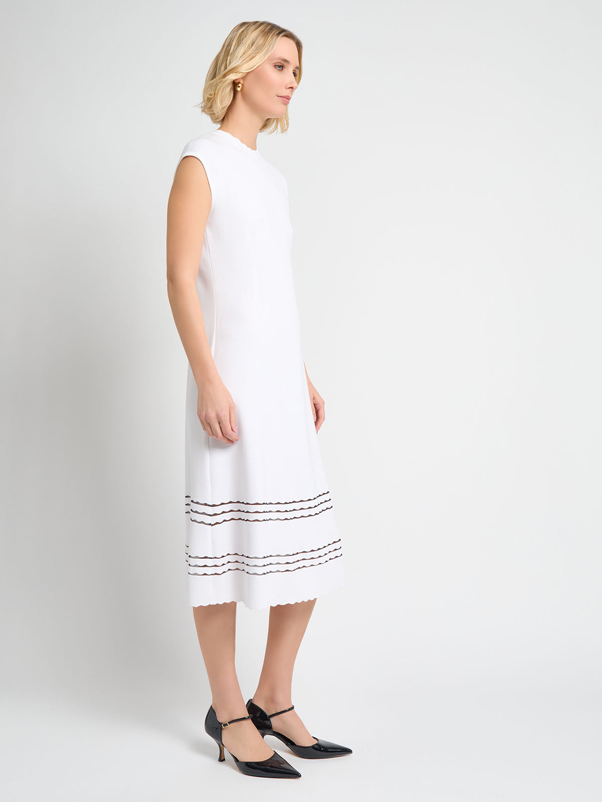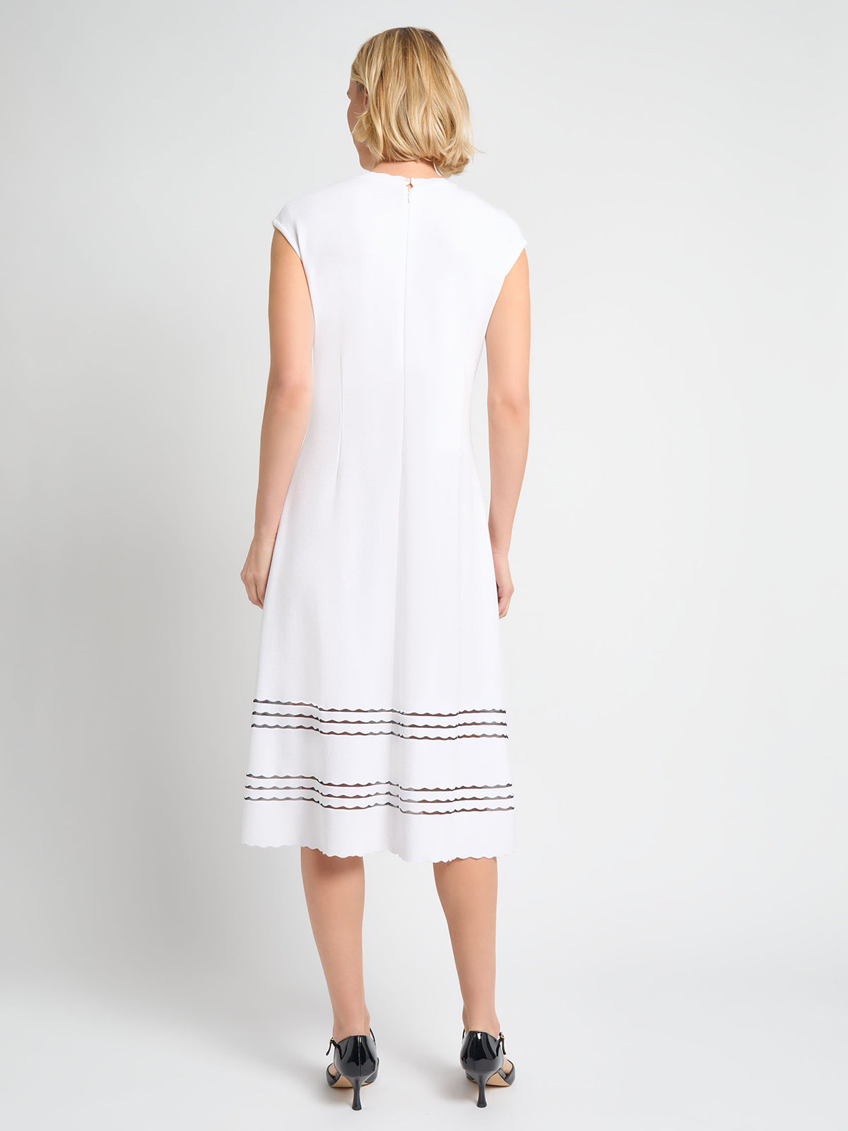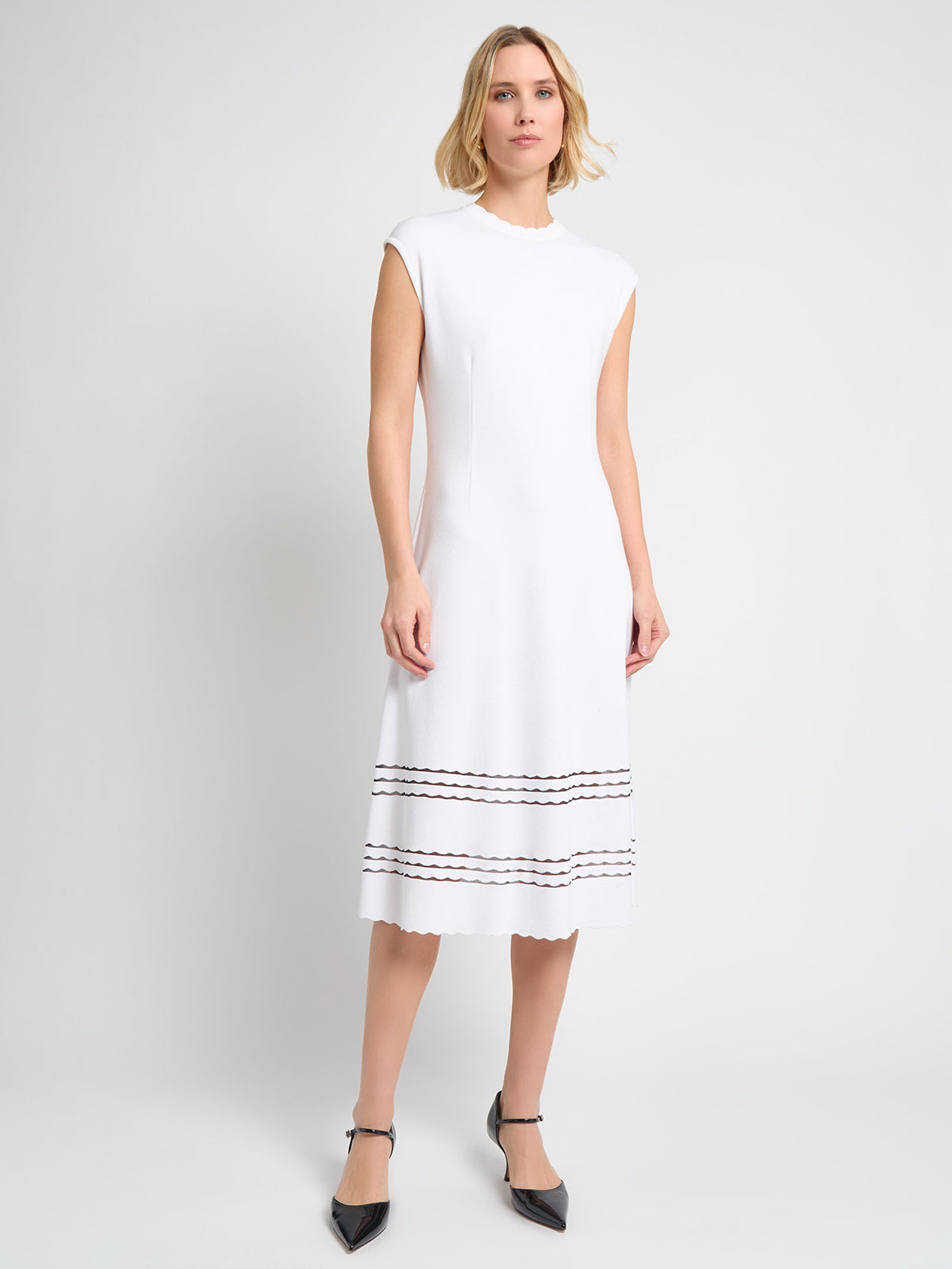 Misook Women’s A-line Scalloped Trim Soft Knit Midi Dress – True Fit | White & Black