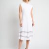 Misook Women’s A-line Scalloped Trim Soft Knit Midi Dress – True Fit | White & Black