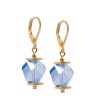 Our Blue Crystal Earrings feature saucer accents that encase the crystal, providing a simple yet stunning look. These earrings are plated in 18K Matte Gold. The Lever Back offers ease of wear. Pair these back with our Matte Amethyst Necklace for a cohesive look.