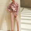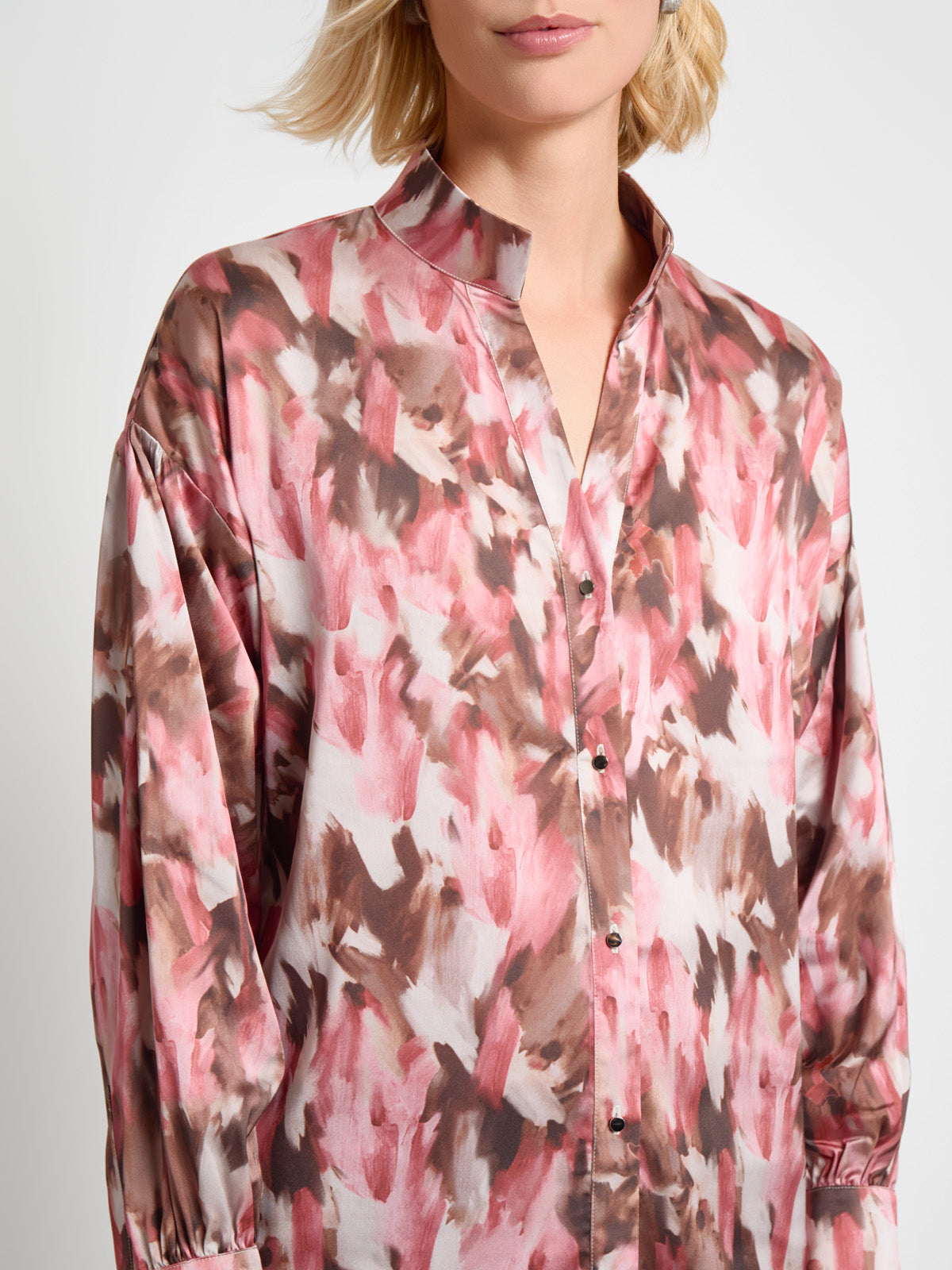 Misook Women’s Brushstroke Printed Crepe De Chine Blouse – True Fit | Honey Suckle & Charmeuse & Truffle & Biscotti & New Ivory & Black
