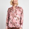 Misook Women’s Brushstroke Printed Crepe De Chine Blouse – True Fit | Honey Suckle & Charmeuse & Truffle & Biscotti & New Ivory & Black