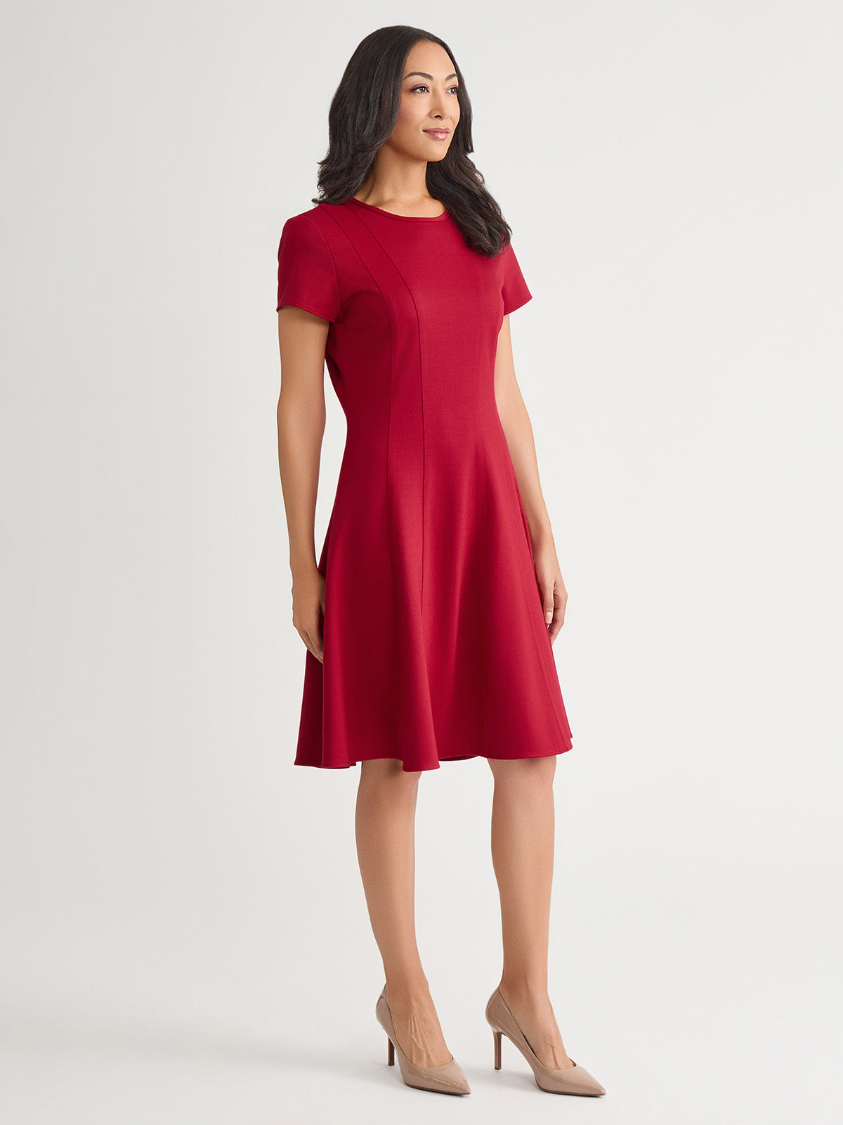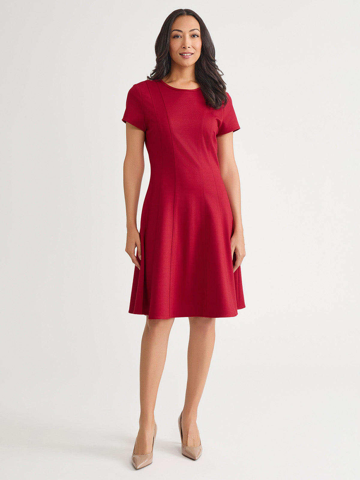 Step into effortless elegance with this Fit and Flare LuxeStretch Dress. Crafted from premium stretch Ponte fabric, this knee-length dress is designed to flatter your figure while providing all-day comfort. With a perfect balance of structure and flow, the fit and flare silhouette creates a beautiful, feminine shape that transitions seamlessly from day to night.