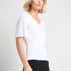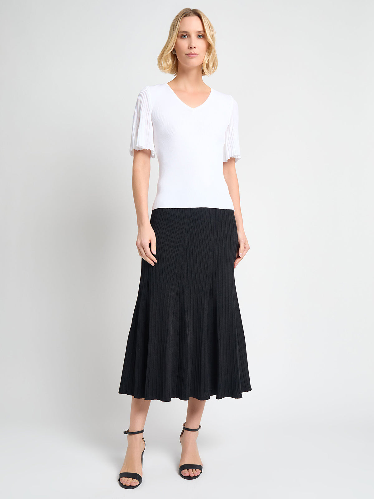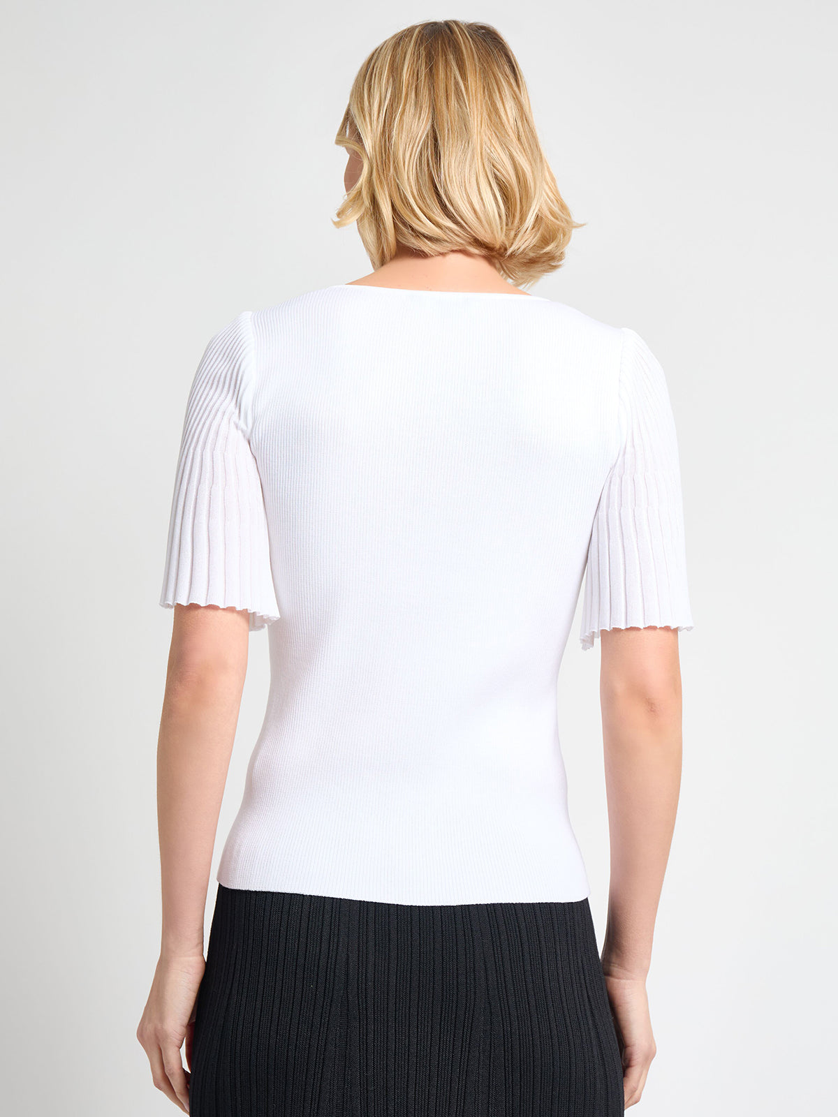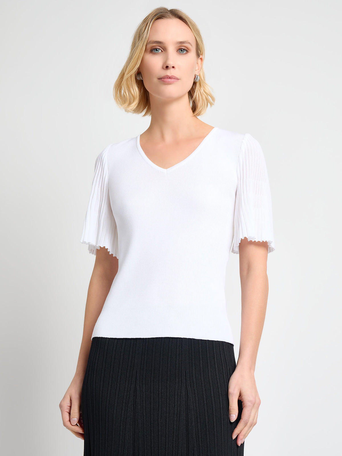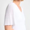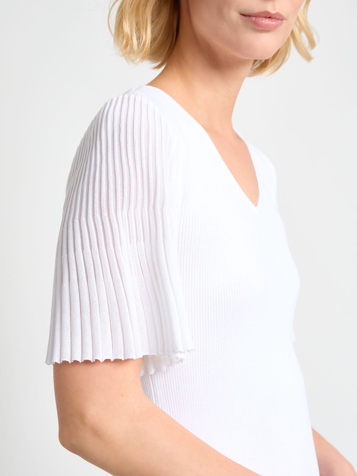 Misook Women’s Fitted Flutter Sleeve Ribbed Knit Tunic – True Fit | White