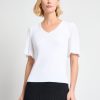 Misook Women’s Fitted Flutter Sleeve Ribbed Knit Tunic – True Fit | White