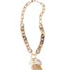Misook Women’s Hammered Matte 18k Gold Olive Resin & Sage Bead Charm Necklace | Matte Gold