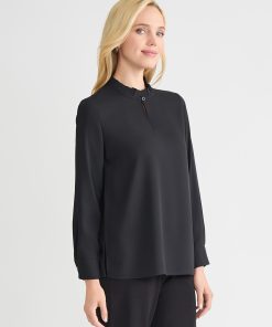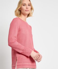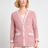 This wrinkle-resistant melange knit jacket combines timeless design with modern detailing. Featuring a flattering heritage silhouette, soft shoulder pads, and a front pearl button closure, this jacket adds a sophisticated touch to any outfit. The fringe trim and faux pocket details enhance its unique, chic look, while the bracelet-length sleeves add a stylish finish.