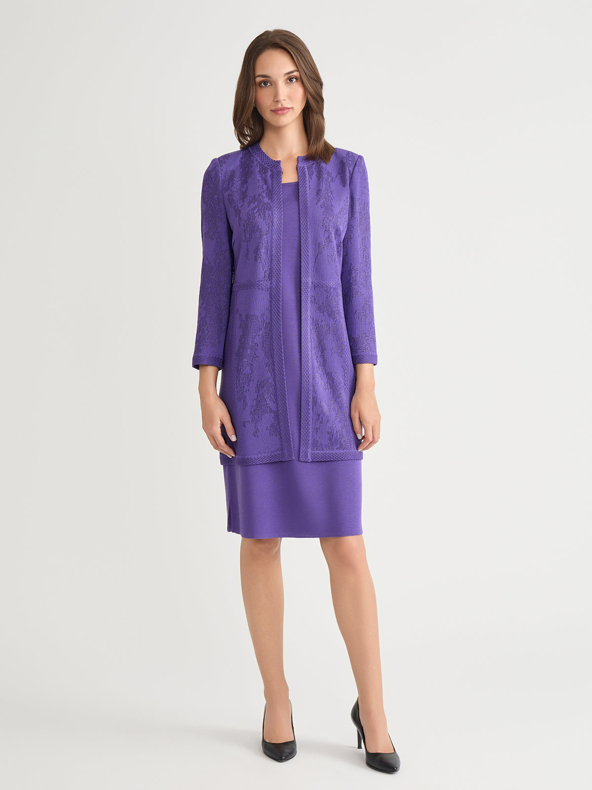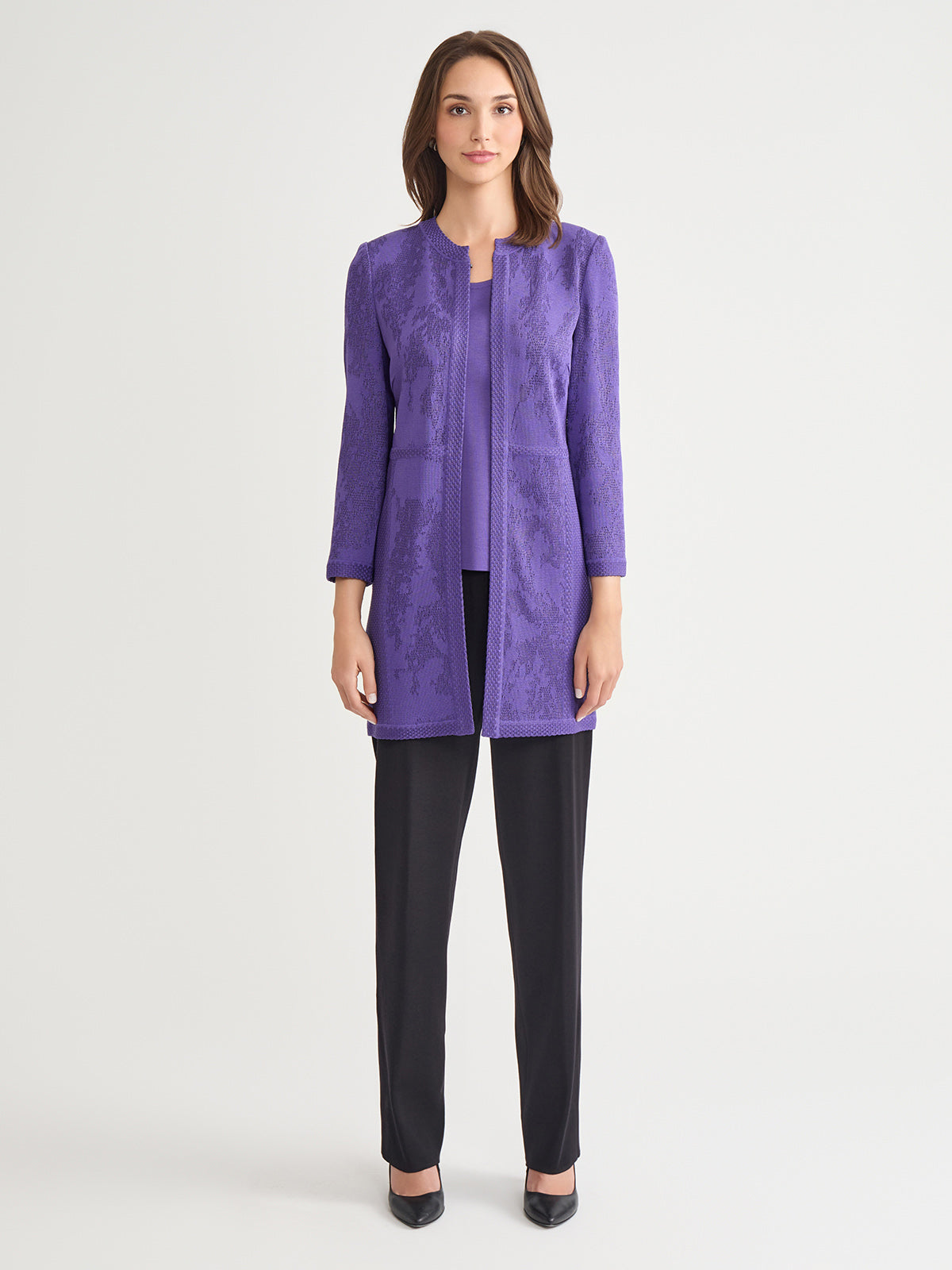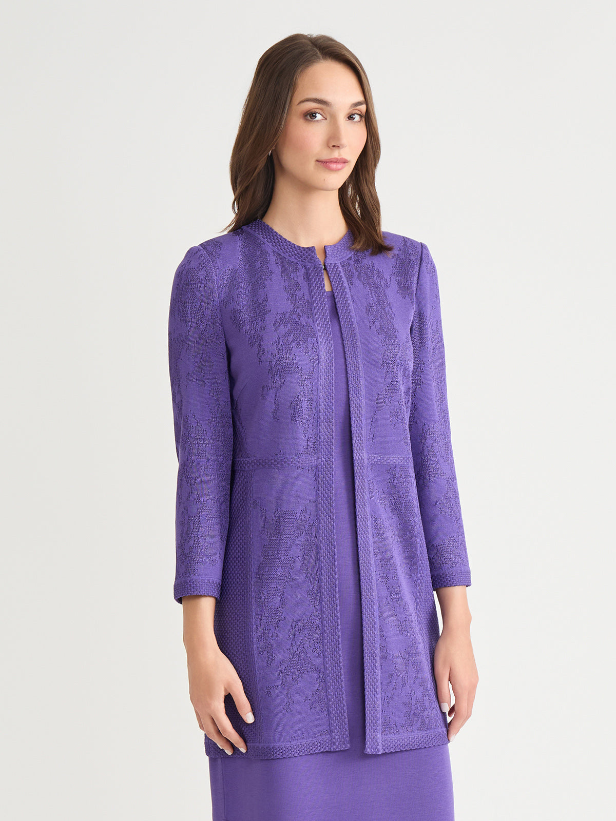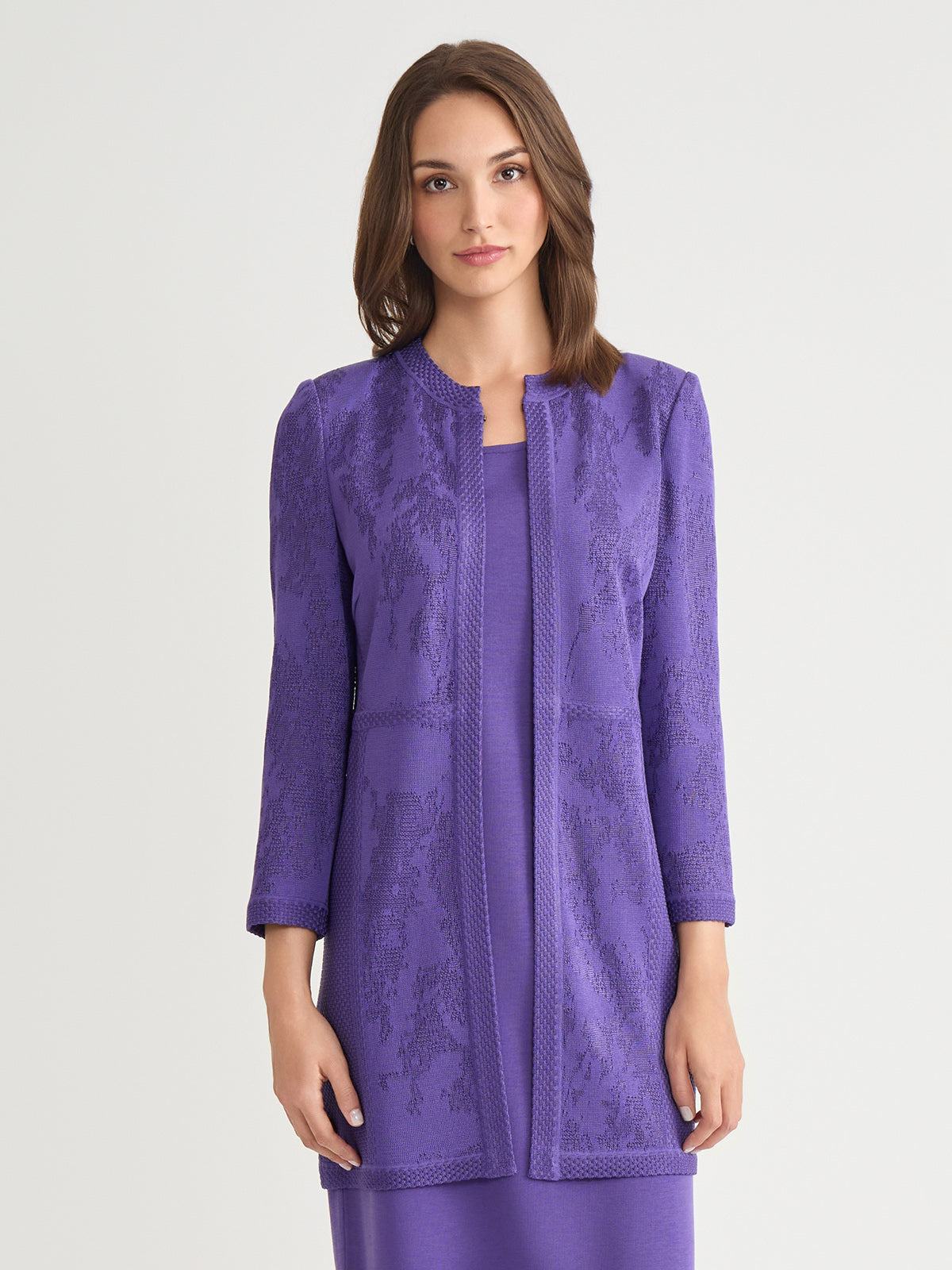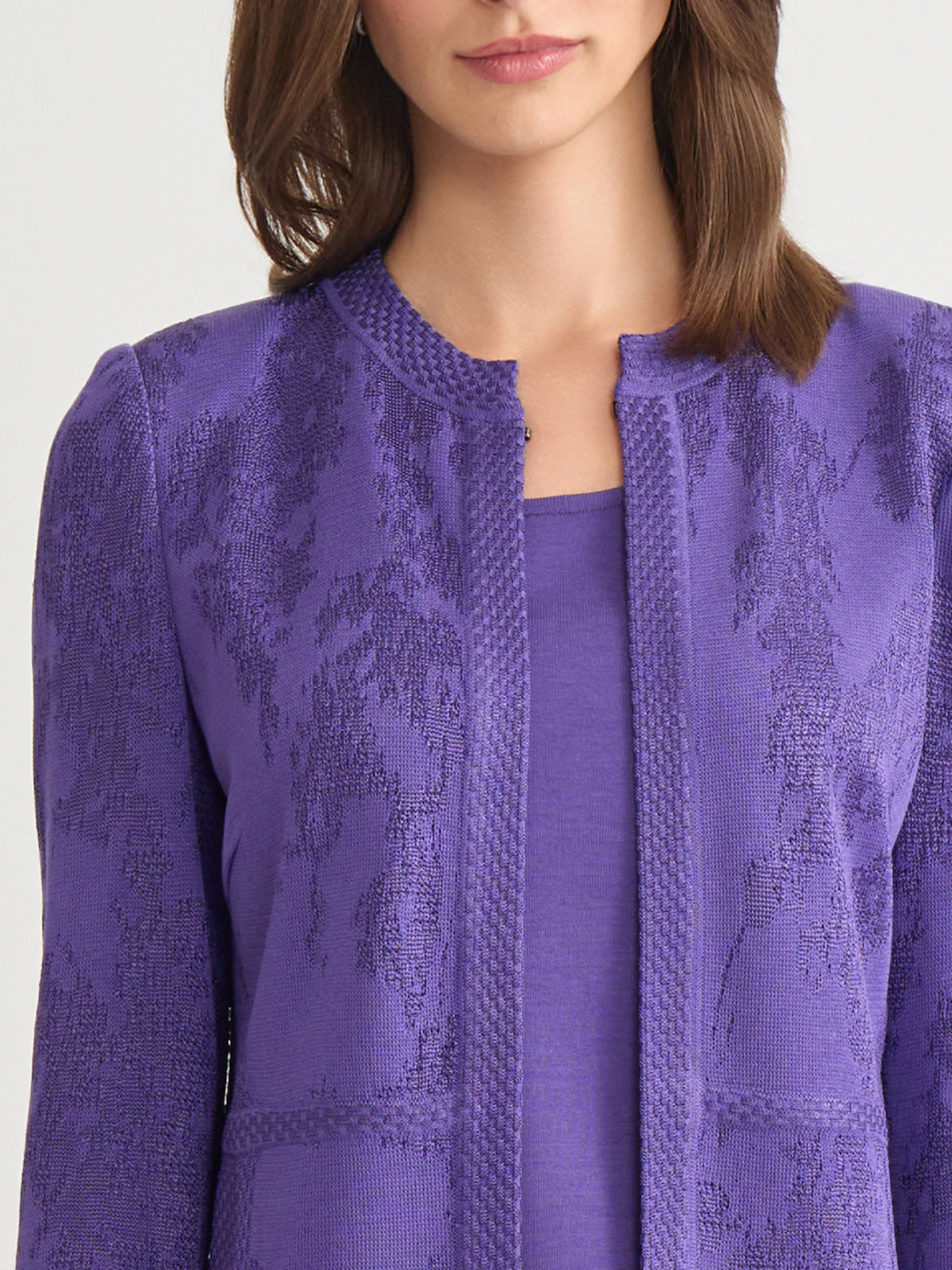 Misook Women’s Heritage Tonal Pattern Knit Jacket – True Fit | Concord Purple