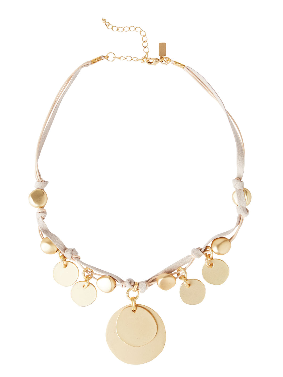 Misook Women’s Matte Gold Coin Charm Natural Leather & Suede Necklace | Matte Gold