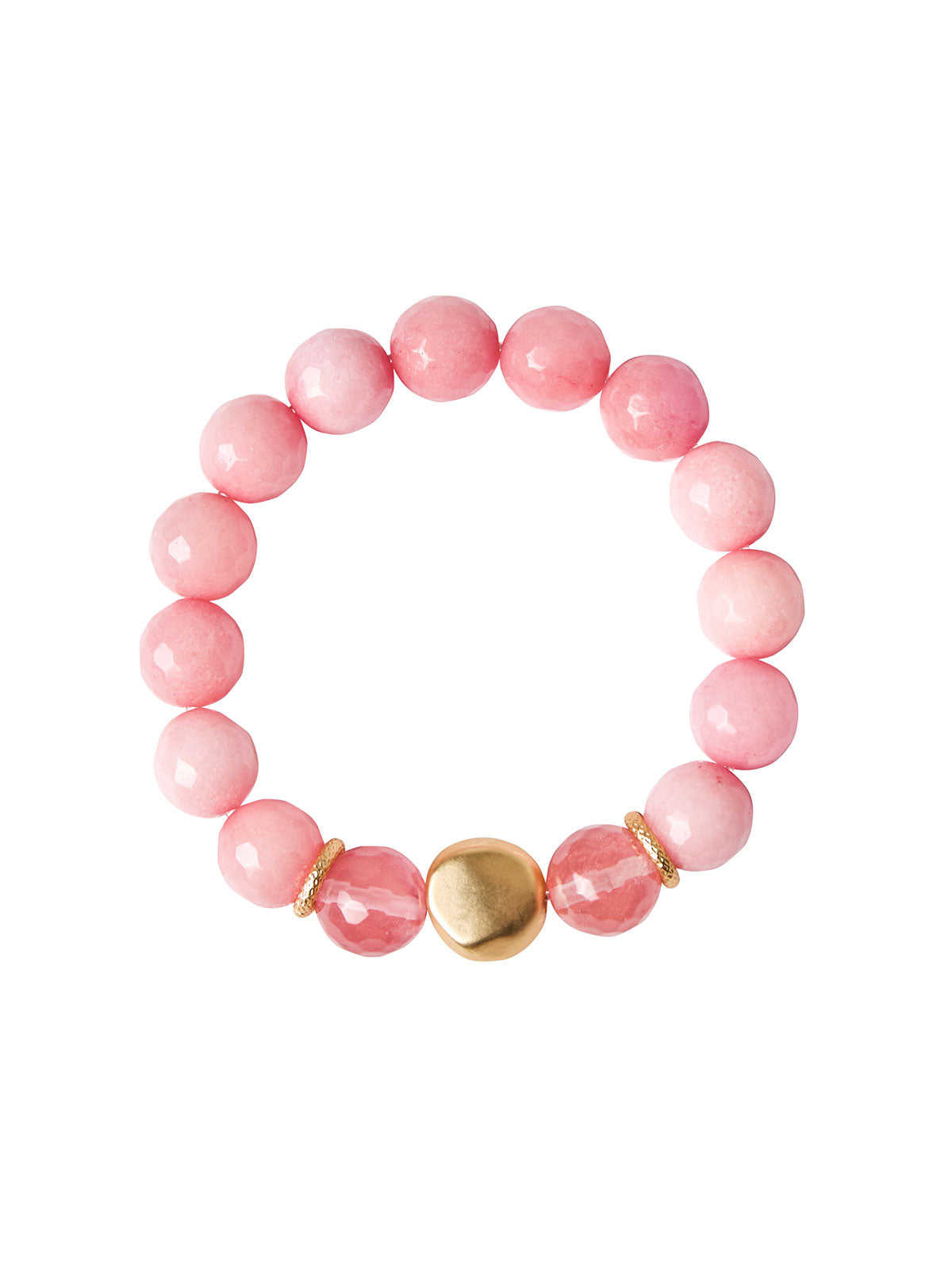 Misook Women’s Melon Quartz And Matte Gold Stretch Bracelet | Pink & Gold
