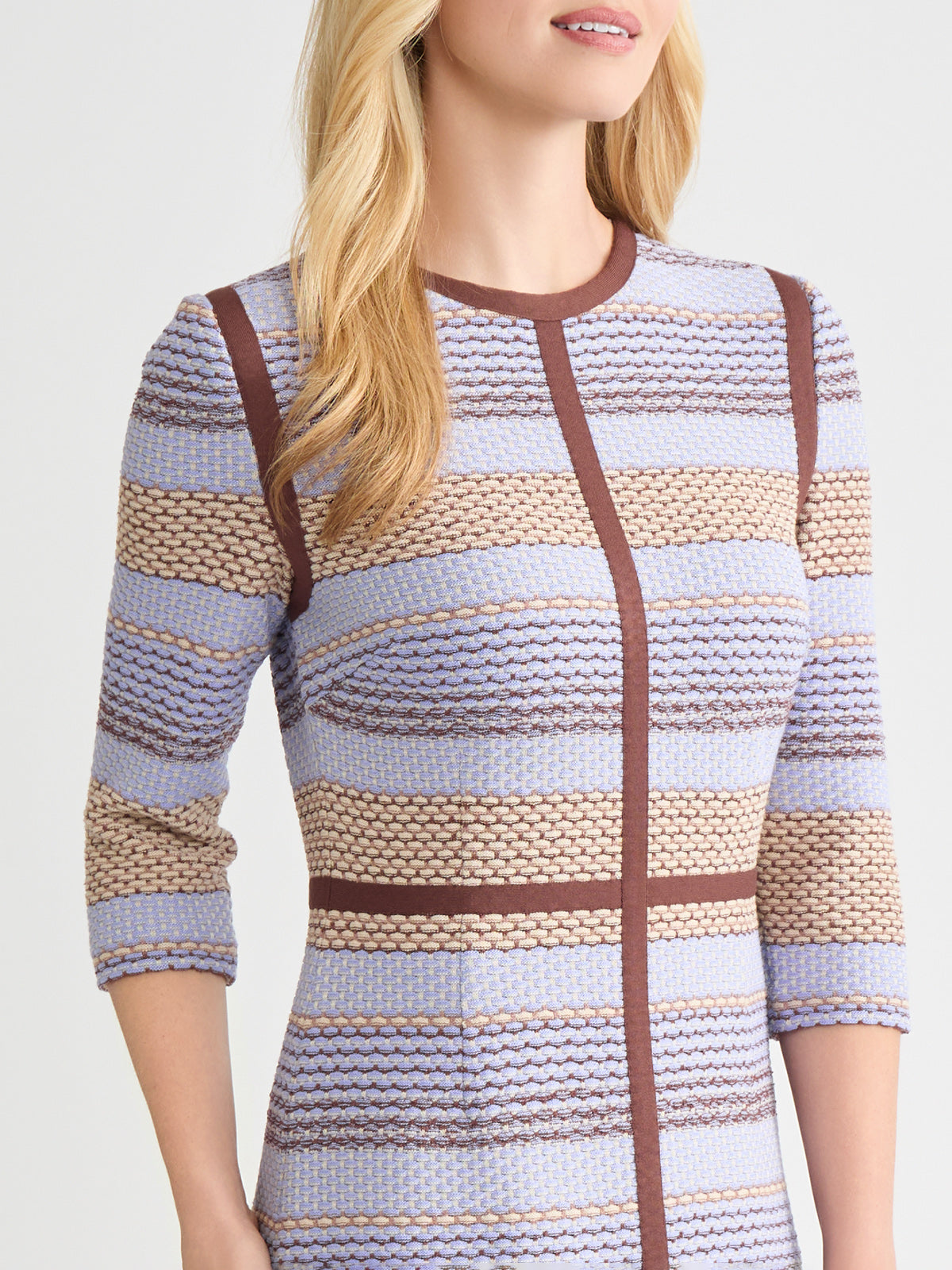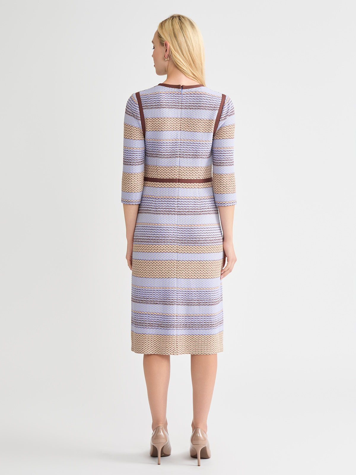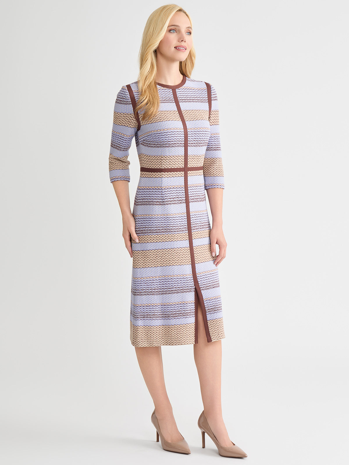 Elevate your professional wardrobe with the Multi-Stitch Sheath Knit Midi Dress, a versatile and sophisticated piece designed to offer both comfort and style. This dress features a classic jewel neck that exudes elegance, paired with 3/4 length sleeves for a timeless and polished silhouette. Perfect for both office environments and after-work events, it combines fashion with functionality.