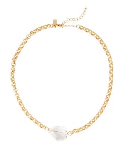 Misook Women’s Handmade Wire Wrapped Crystal Nugget Matte Gold Rolo Chain Necklace | Crystal & Gold