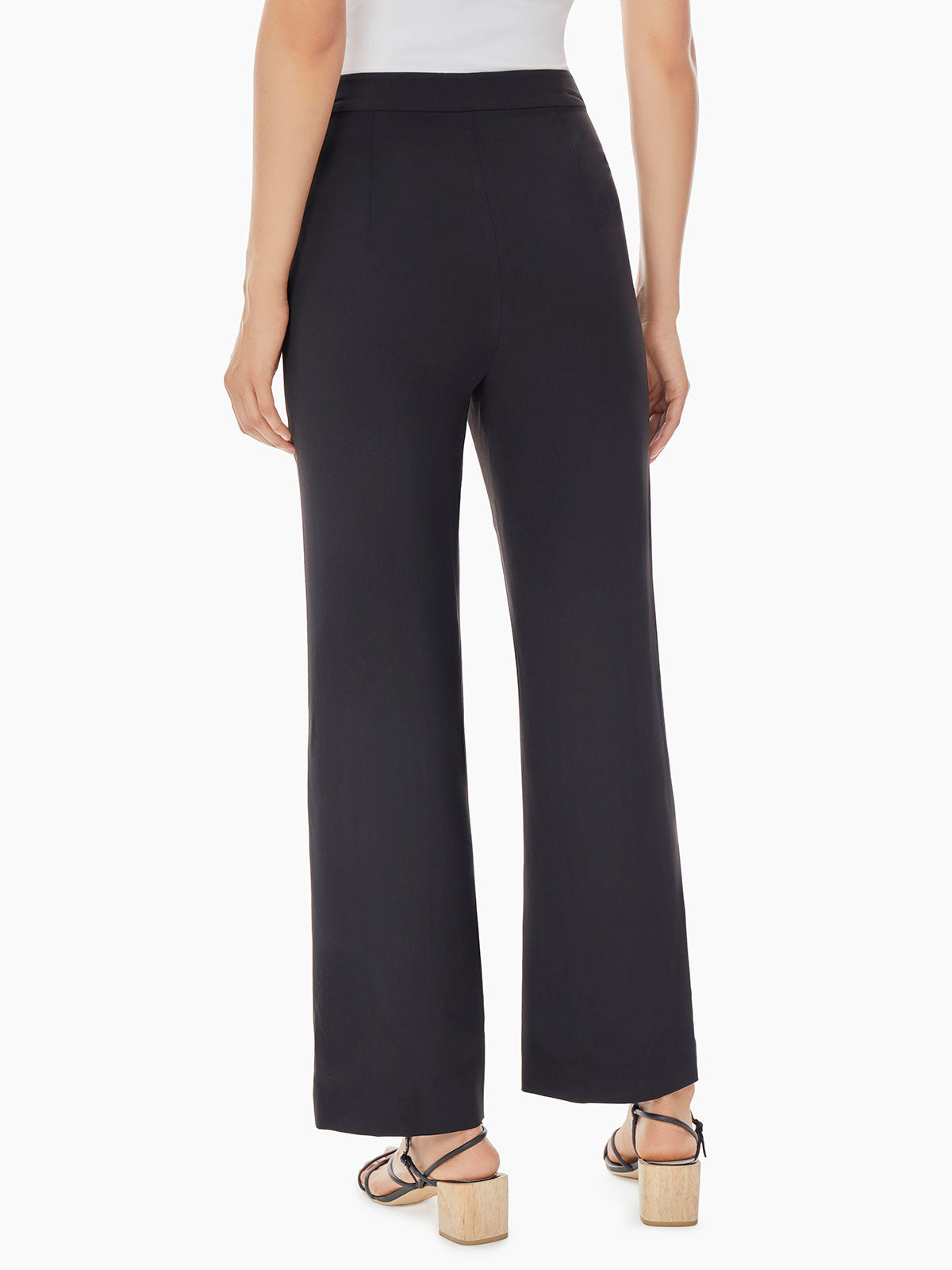 With a fluid, wide leg cut and drapey crepe fabric, these pants defy expectations and define sophistication. In always-classic black, they’re a seasonless staple and a perfect pairing with any jacket.