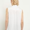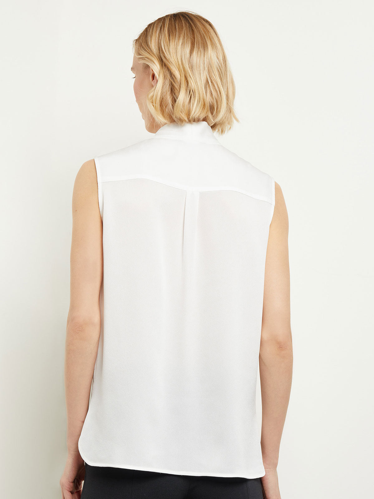 Ribbon Tie Closure at Neck; Button-Front; Sleeveless; Unlined