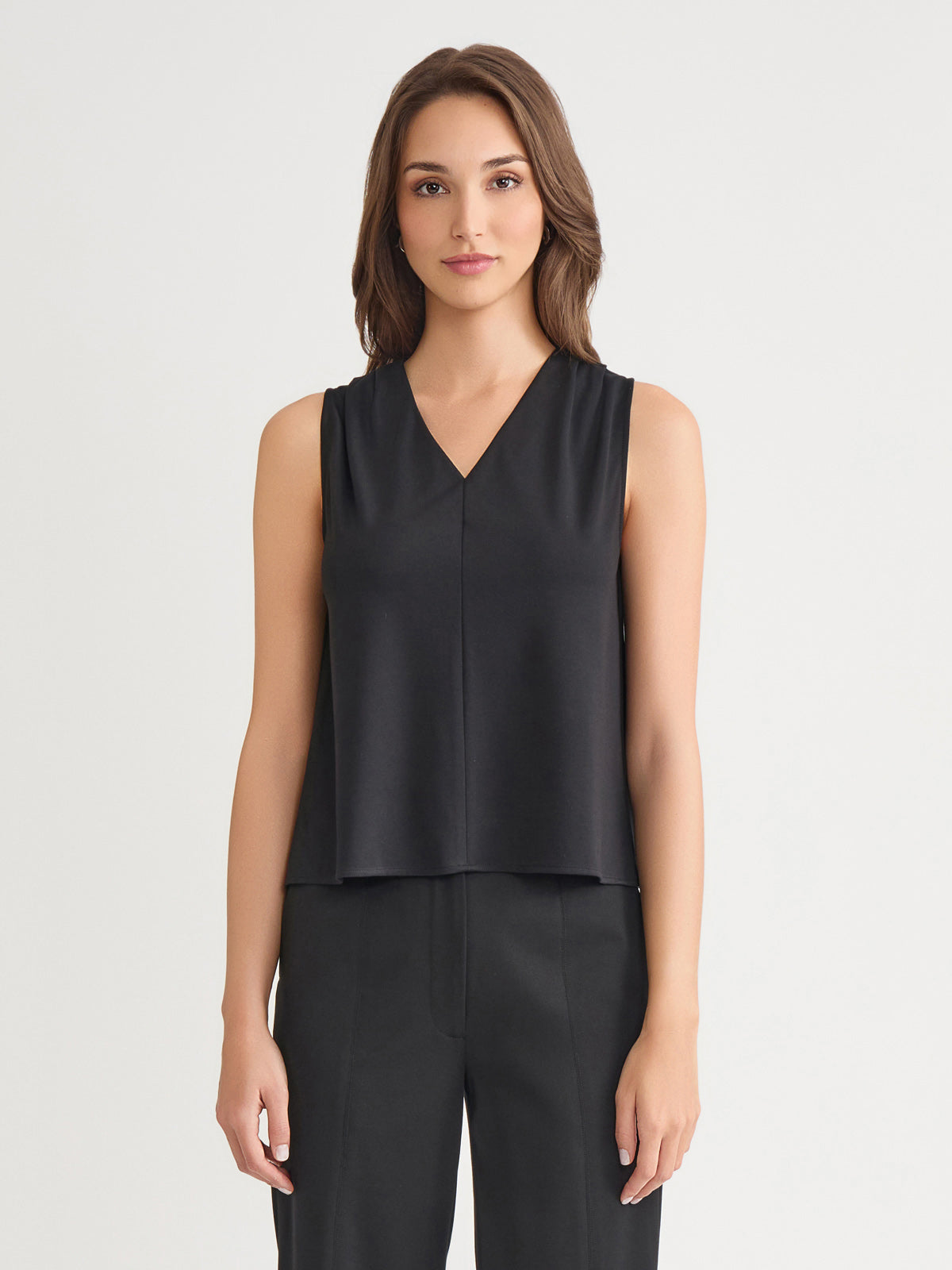 Minimalism meets sophistication in this V-Neck Cotton Tank, a versatile staple designed to elevate every ensemble. Crafted from smooth, breathable cotton, this sleeveless silhouette drapes gracefully with a clean front pleat that adds subtle structure. The flattering V-neckline creates an elongated look, ideal for layering under tailored blazers or wearing solo for understated chic.