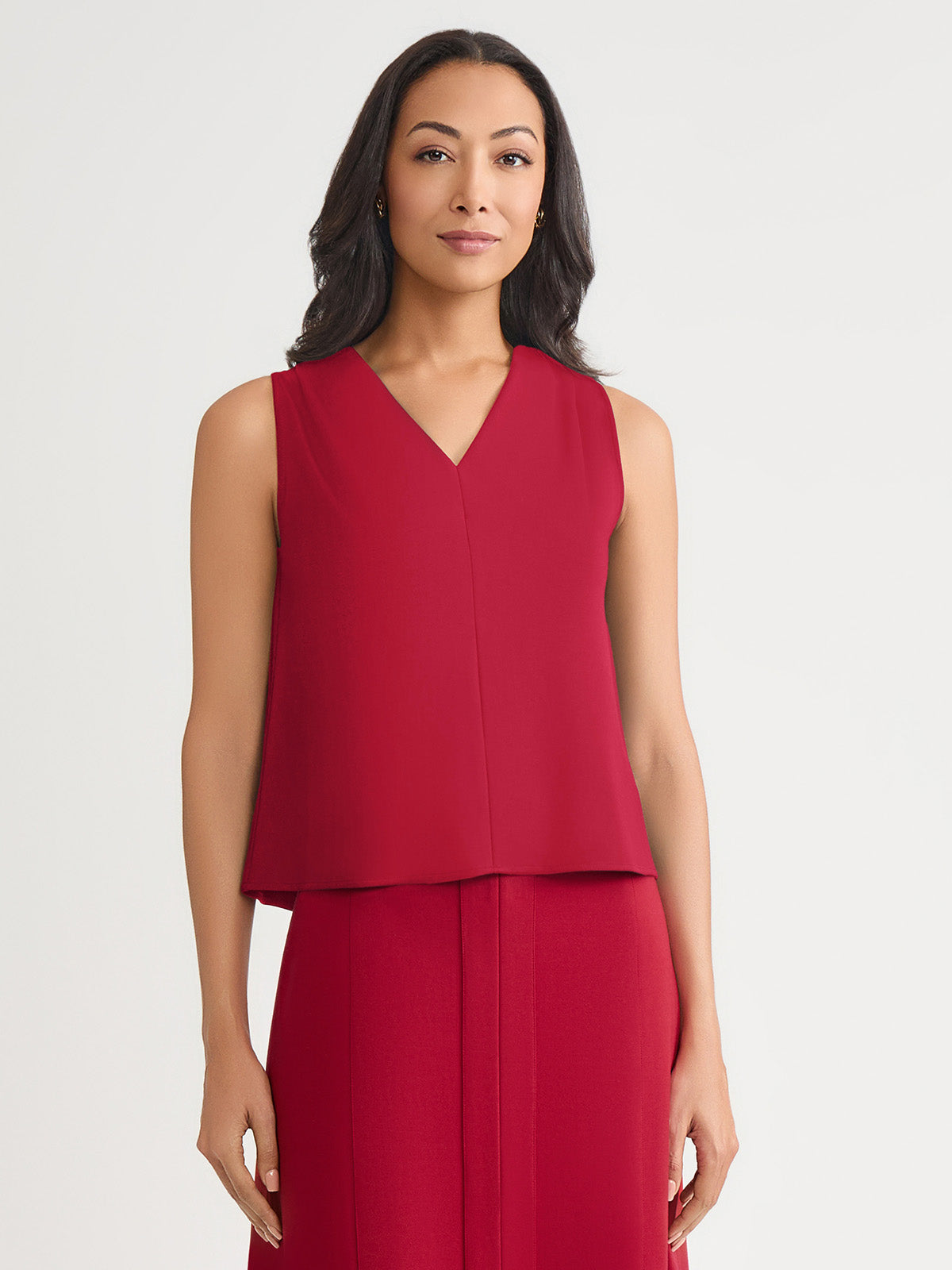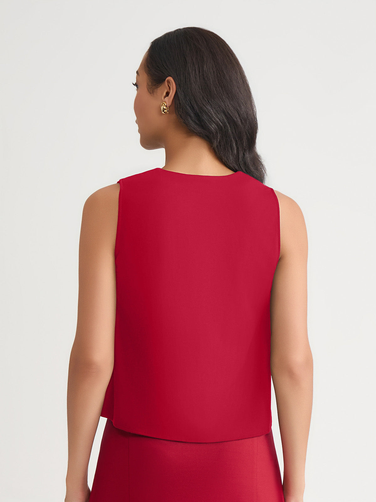 Minimalism meets sophistication in this V-Neck Cotton Tank, a versatile staple designed to elevate every ensemble. Crafted from smooth, breathable cotton, this sleeveless silhouette drapes gracefully with a clean front pleat that adds subtle structure. The flattering V-neckline creates an elongated look, ideal for layering under tailored blazers or wearing solo for understated chic.